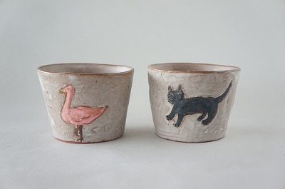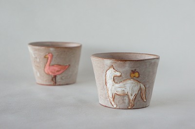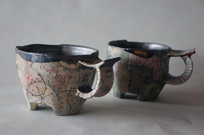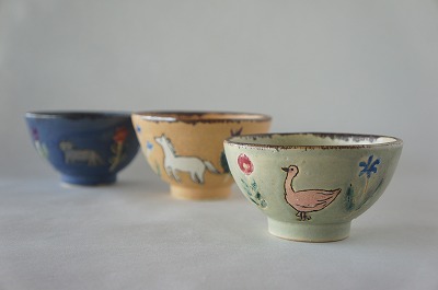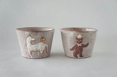 食卓を明るくしてくれるアートなうつわをテーマに、数種類の作品を製作しています。今回の個展は絵本の中に出て来る様な動物やお花の「FAMILYシリーズ・CUTEシリーズ」や、シンプルな定番の「LIFEシリーズ」が届きます。その多種多様な雰囲気の作品は一人の作家さんが作っているとはとても思えません。